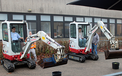 Bälle sammeln und ablegen? Eigentlich für viele unserer Schülerinnen und Schüler mit Konsolen-Erfahrung ein Kinderspiel. Aber mit einem echten Bagger Tennisbälle mit einem Greifarm hochhieven